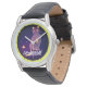 名前をカスタムする芸術的かわいい猫とムーンナイト 腕時計