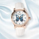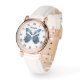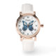 女性の時計は、愛らしいブルートーンの蝶のイラストレーションを特徴とし、宇宙でタイポグラフィに名前を追加エレガントする。ウォッチ顔プレートはローマ数字を持つ。