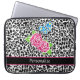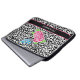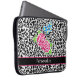 トレンディーの黒と白のヒョウ柄15インチのラップトップスリーブとピンクのバラガーリーとモザイクのスタイル柄の黄色の斑点を持つ可愛い青い蝶。名前を追加してこのデザイナアニマルプリントアイテムをパーソナライズする。シックな女の子の10代のファッションに最適。