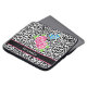 名前ガーリー付きピンクのローズモザイクヒョウ柄 ラップトップスリーブ