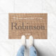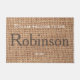 名前スタイリッシュ茶色の農家の国のburlap文字doormat。茶色のモノグラムのファミリー名doormatで美しい色の一致。