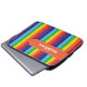 この鮮やかなレインボーストライプのパターンラップトップスリーブは、上部に白いステッチ詳細を持つオレンジ色のバナーリボンを持つ。名前パーソナライズされたか追加したい文字で。