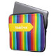 この明るいレインボーストライプのパターンラップトップスリーブは、上部に白いステッチ詳細を持つ黄色のバナーリボンを持つ。名前パーソナライズされたか追加したい文字で。