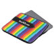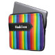 この鮮やかなレインボーストライプのパターンラップトップスリーブは、上部に白いステッチ詳細を持つ黒いバナーリボンを持つ。名前パーソナライズされたか追加したい文字で。