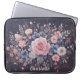 名前パーソナライズされたネイビーブルーピンクグリッター花 ラップトップスリーブ
