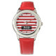 名前パーソナライズされたブルゴーニュ赤い無地の女のストライプ子 腕時計