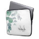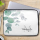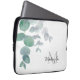 こ保護の飾ラップトップスリーブを使ってノートPCにスタイリッシュも。白い背飾景に緑の柔らかい色合いの水色ユーカリの緑がある。おカスタマイズ前の名前とモノグラムでオリジナル水彩©ミケーレ・デイヴィス。