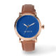 このエレガントバラの金ゴールドグモダンラムの男性の腕時計は飾、青い時計の顔と彼の名スタイリッシュ前の茶色のバンドと一緒にいる。名前を簡単に変更したり、目的のティックマークを削除するこもしとができる。彼にとって何と素晴らしい贈り物 – 花婿介添人、グロムスマン、アッシャー、卒業、父の日、誕生日、またはその他の特別な機会。All Rights Reserved © 2023 Alan & Marcia Socolik.