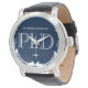 青と白の配色の博士課程の卒業生のための時計の贈り物。学位、名前、年を示す。単にカスタマイズこの時計をカートに追加し与えて、この業績の記念専攻のとして名前Blue PhD卒業ウォッチ休日デザイン | ©メリッサパトン – デザイナー