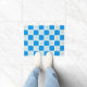 名門私立校風の青い花市松模様にの模様 ドアマット