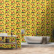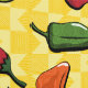 peri-peri、frigio、habanero、rocoto、jwala、shishito chiliペッパーは元々栽培された地域や一般的に飾、黄色い背景に座って食べ、先住民の人々のタトゥーによってパターンを持つ黄色い背景に座って、これらの美味しいおもしろいの起源と広がりを反映繰パターンを作成インスパイア。