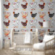 卵と4つの幸せな鶏は、明るいキッチンの壁紙デザインを作る
