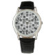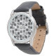 この男性用ウォッチは、黒い四角の幾何学的なデザインと、輪郭とともに散らばった灰色の色合いを持つ。