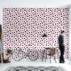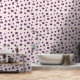 淡いピンク色の背景と紫の水玉模様にイチジクのパターンを持つ壁紙:移動したばかりの人のための素敵な贈り物またはあなたの家の装飾!