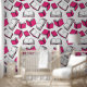 ピンクと白の図書館の本パターン(の模様が)ある学教室の剥離とスティック壁紙