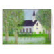 丘の白い国教会のパステル。 それの側の池はステンドグラス窓の青、赤、黄色、オレンジおよび紫色を反映します。
