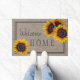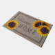 国素朴歓迎ホーム大きな黄色の黄金色のヒマワリの背景の上にdoormat。