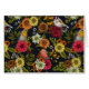 花やの花束の上にロビン、ゴールドフィンチとバルフィンチの手で描かれた庭の鳥 – ダリア、菊、カレンデュラ、ツタとシダの花とシダ