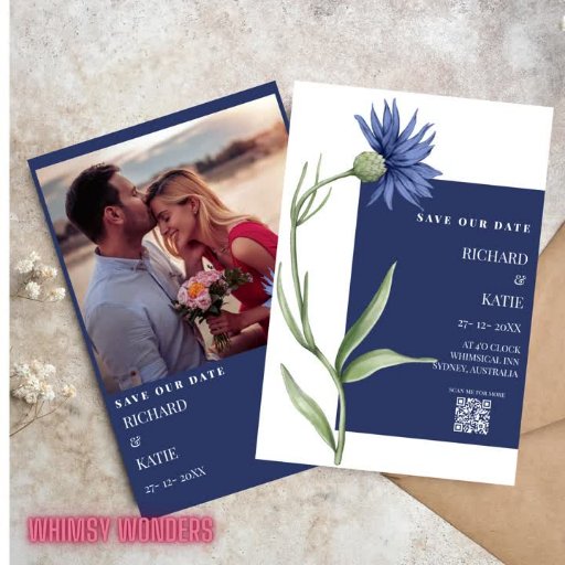 埃はっきりした青スタイリッシュフローラ結婚Qrコード 招待状