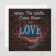このデザインは、隠された真実を明らかにするための強力な比喩を捉えている。風化したレンガの壁にギザギザの開口部があり、その中に「LOVE」という言葉が部分的に見え白熱[赤熱]光を放つて、暖かい赤い光が灯っている。「壁がダウンしたとき来」というフレーズは書、レンガの軽い落書きスタイルに含まれて、私たちが隠された何かを明らかにすることを選択した瞬間を象徴している。