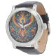 炎からはっきりした立ち上がる鳳凰を織り交ぜ鮮やかた印象的な腕時計で表現。時計顔の詳細なアートワークは、オレンジ、イエロー、ブルーの豊かな色合いを示し、リニューアルと強さを象徴している。ブラックレザーお洒落ストラップとシルバートーンケースを組み合わせ、エレガントな芸術性を兼ね備えた時計。神話的なデザインやアクセサリーを鑑賞する人に最適ユニークで、この時計はあらゆる衣装にパワーと洗練のtouchを加える時代を超越した作品だ。