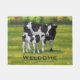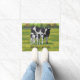 夏の牧草地でホルスタイン牛&かわいい子牛 ドアマット