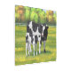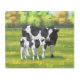 夏の牧草地でホルスタイン牛&かわいい子牛 メタルプリント