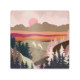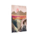 色と質感ユニークを持つ抽象芸術の風景で、太陽が昇り、オレンジ、ベージュ、ブラウン、ピンクの色合いの2つのガチョウと自然の風景を示す。