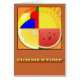 ビーチボール、太陽、スイカとレモンが一緒に円を型枠。夏期を作るすべてのもの。何の素晴らし理由もなく送るカード。郵便切手のマッチングが可能。