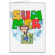 カラフルおよびおもしろいの夏のTシャツ、フード付きスウェットシャツ、マグ、カード、ビーチのバッグ、磁石および棒を特色にする他の項目はビーチで水中に泳いでいるブルネットの髪の男の子をおよび"夏"を読む多彩の文字を計算します!