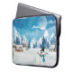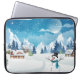 夕べ村の冬の風景で、雪に覆われた家や雪だるま、山々がある。クリスマス休暇イラストレーション