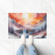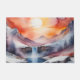 雪の水の色は、小さな水のストリームと滝の赤い夕日の下の山々を覆った