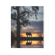 母自然すごい!ステファニー素晴らし・レアードの美しい芸術馬のイメージは、夕日に馬を持ち、オークの木は雲の中の南西の色でシルエットされている。池の静かな水面に映る反射は美しい。