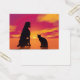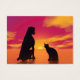 犬が座って美しい赤い夕日を眺める隣の猫の黒いシルエット