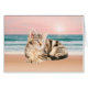 猫ストライプの日没でビーチに座る。猫好きに最適。