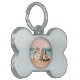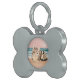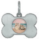 夕焼けでストライプのビーチに座る可愛い猫 ペットネームタグ