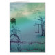 外で女の子の編み物。 青い色合い。 振動が付いている有刺鉄線そして木。 またある小鳥。 そのかわいらしく甘いカード!