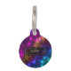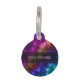 抽象芸術とカラフル宇宙コスモス/宇宙星雲の背景に白い点を星として。このデザインは、青、ピンク、緑、オレンジなどの色を特徴としている。前面にはペット名のパーソナル化可能な文字領域があり、背面には電話番号のパーソナル化可能な文字領域がある。