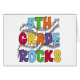 原色の大きく明るい文字は第5等級の石先生の黒い楽譜の背景に対して"第5等級揺れます"をおよび学生のTシャツ、フード付きスウェットシャツ、マグ、学校のトートバック、カード、ステッカー、磁石、および多く読みます!