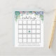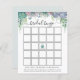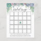 ブライダルシャワービンゴカードは、紫、緑、ほこりっぽい青い多肉類、ユーカリ、緑のカスケードを搭載。花嫁が贈り物を開く間、シャワー客と交流するおもしろい。