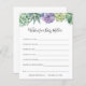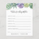 あなたのシャワーのゲストがあなたの赤ちゃんシャワーでベビーカードのためのこれらの愛らしい願いを記入する。水色の緑と紫の多肉植物を特徴とする。Mommy-to-beの名前とシャワーの日付でパーソナライズ。