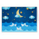 ファンタジーイラストレーション夜の海と紙ボート