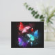 黒い光の背景の上に、光る3つ、赤、紫、緑、テクスチャ、夜の蝶。