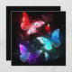 黒い光の背景の上に、光る3つ、赤、紫、緑、テクスチャ、夜の蝶。