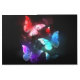 黒い光の背景の上に、光る3つ、赤、紫、緑、テクスチャ、夜の蝶。