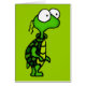 googly目および2つのscraggly毛を搭載するかわいく小さい緑の漫画のカメ。 テイラーAddams著元のデジタル漫画の芸術。