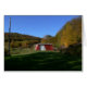 刈られる分野および日光で光る大きく赤い農場が付いている早い秋。 Neversinkニューヨーク。