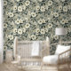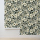 大きなフローラグリーンホワイトとグレー 壁紙