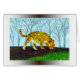 ジャガーがジャングルの中を散歩し、木々を後ろに隠していた。この大きな猫アートは私のオリジナルミックスメディアアクリルとガラスの絵画から来た。©アナベルポッター