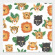 大きなジャングルの猫とサバンナの猫のパターンを持つ子供部屋ルームやキッズルームの大きな猫壁紙ライオンズ、パンザー、トラ、ヒョウ、オセロットなど。大きな猫をテーマにした子供部屋の壁紙魅力的おもしろいライオン、パンザー、トラ、ヒョウ、そして表情と緑の違う海ロット。少年の部屋や子供部屋の虎、獅子、ヒョウの壁紙。